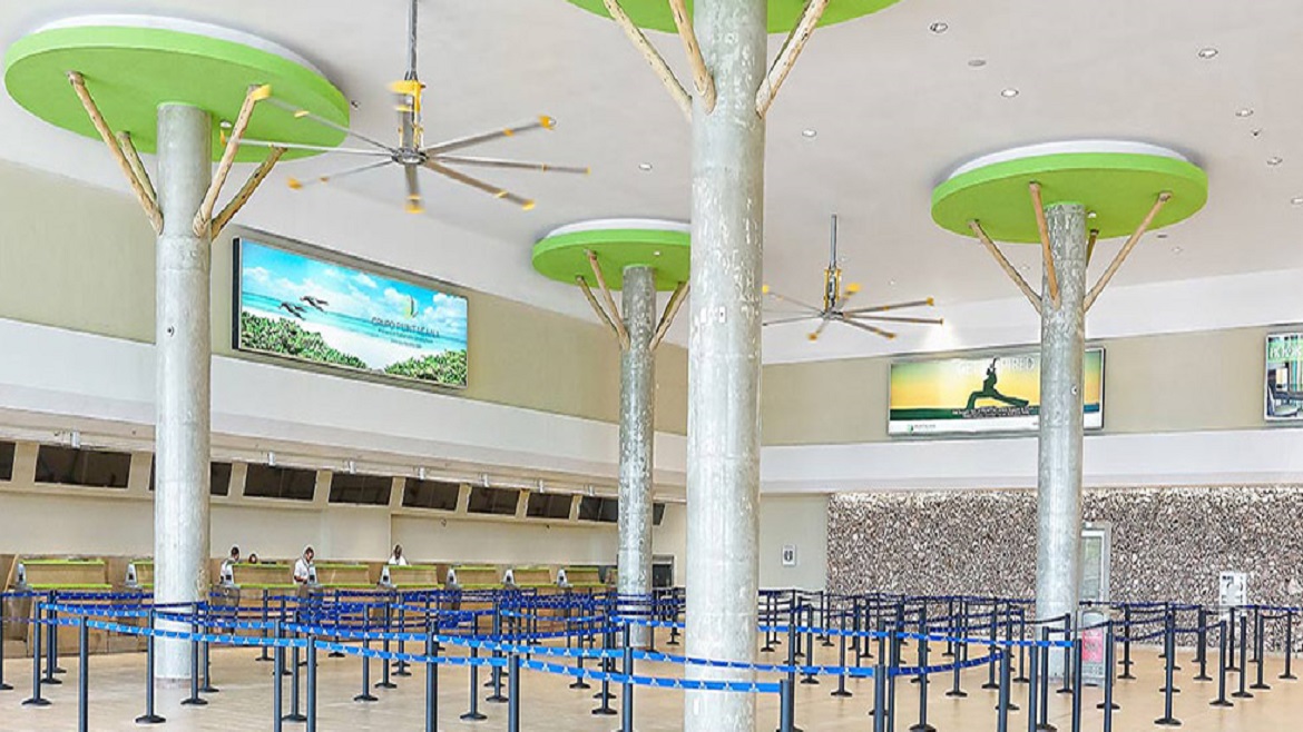 New terminal building is completed as a result of the extension project at Punta Cana International Airport. The interior is recognizable by design that recalls the palm trees on the local tropical beaches. The whole roof structure, both existing and new, is covered with cane palms’ leaves.